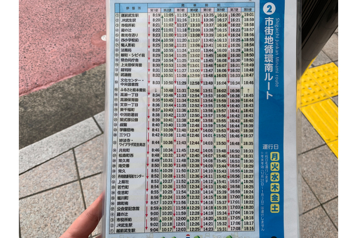 - 市街地循環南ルートの時刻表