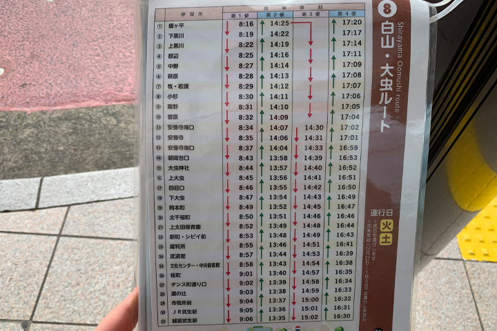 - 白山・大虫ルートの時刻表