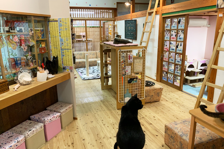 お部屋は合計3つあり、わんぱくな猫ちゃんが集まるお部屋とのんびりした猫ちゃんが集まるお部屋とカフェスペースに分かれています。