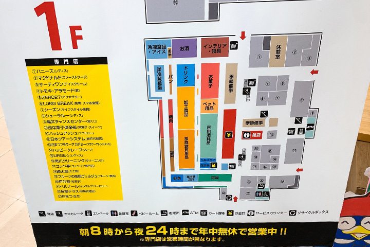 | 営業時間 | 8:00~24:00 ※専門店は営業時間異なります |