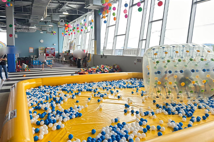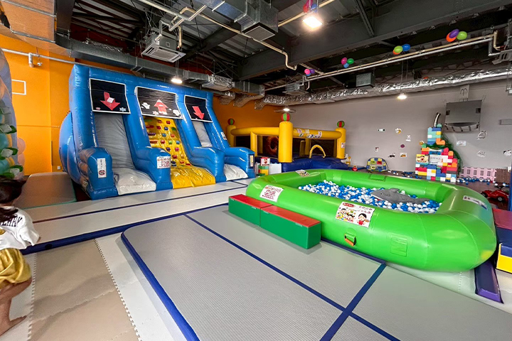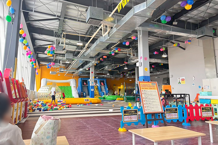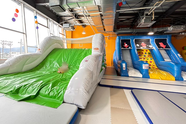 エアー滑り台やボールプール、サイクルカートなどの乗り物、トランポリン、巨大なバルーンの遊具などなど、子供たちがワクワクする室内遊具が盛り沢山。
