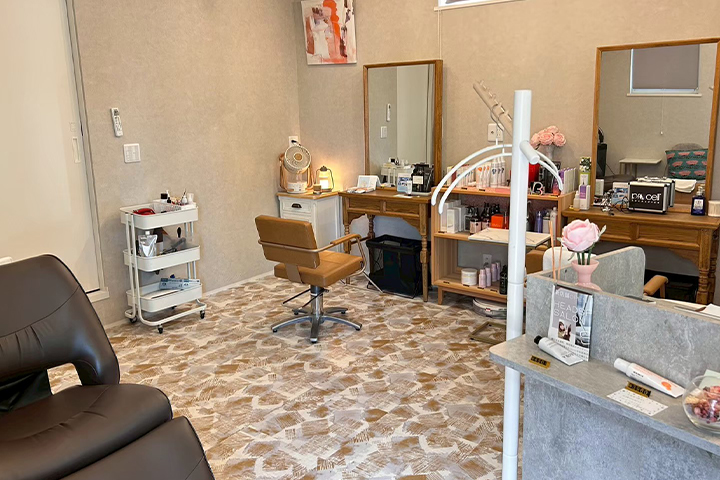 自宅の一角にあるこのサロンは、オーナーさんの好きを詰め込んだこだわりの内装になっているそう♪