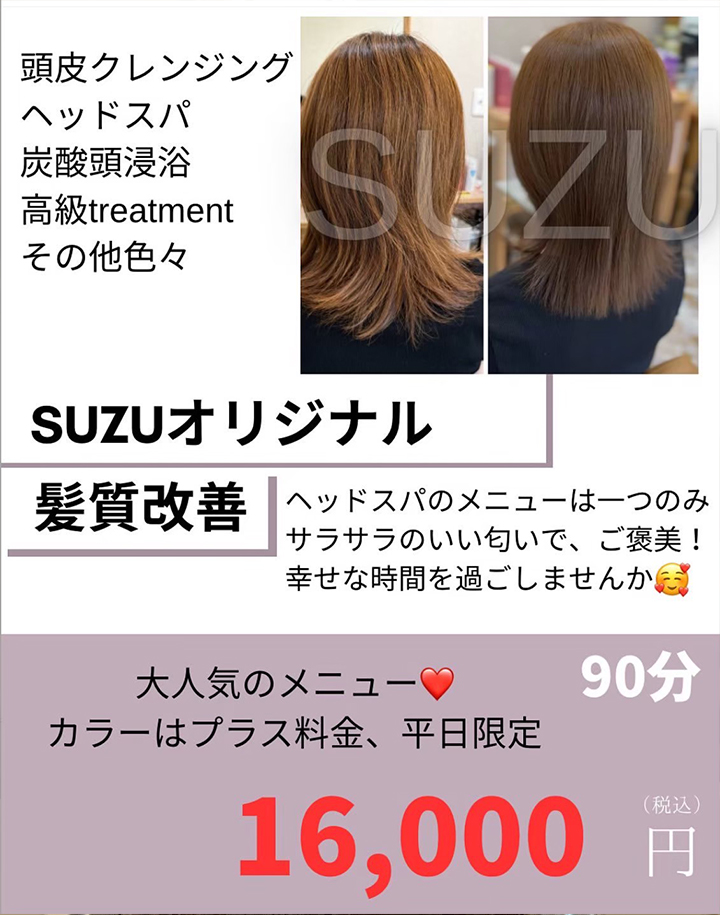 今回は髪のとっても綺麗な友人の口コミで『贅沢なヘッドスパがある』と聞いて予約し、髪質改善のヘッドスパコースをお願いしました。