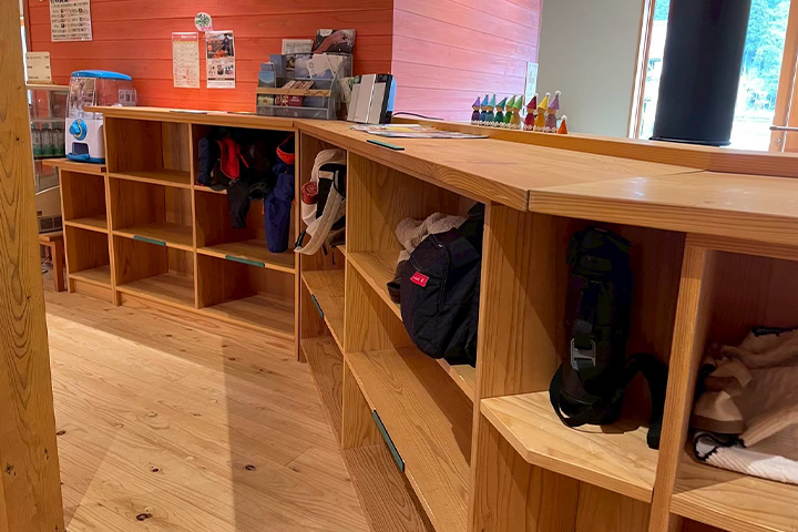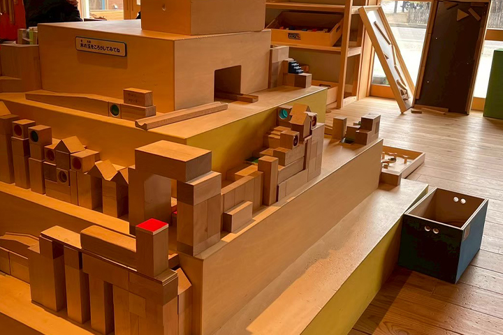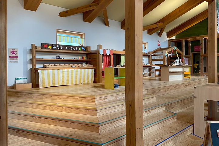 館内は広々とした木の空間が広がり、子どもたちの好奇心をくすぐる工夫がたくさん!