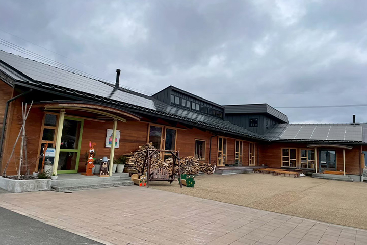 池田町の静かな山あいにあるこの施設は、木造の外観が印象的。