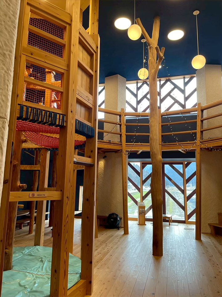 自然豊かなロケーションの中にある、木のぬくもりあふれる屋内型の子ども向け遊び場です♪