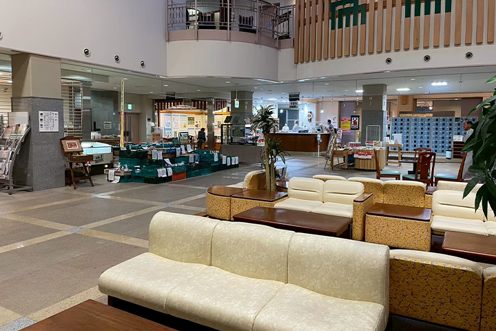 館内は広々としており、ロビーでは地元で採れた旬の野菜や果物も販売しています。