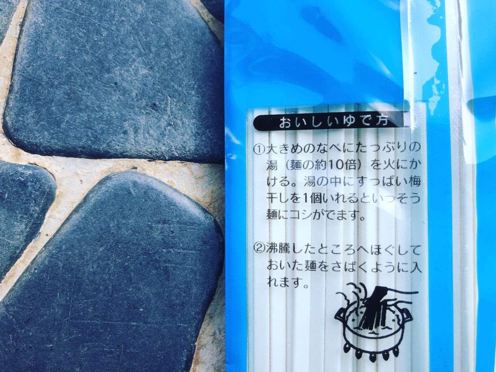 作り方の説明にあった「湯の中にすっぱい梅干を1個いれるといっそう麺にコシがでます」を完全に見落としていた私。