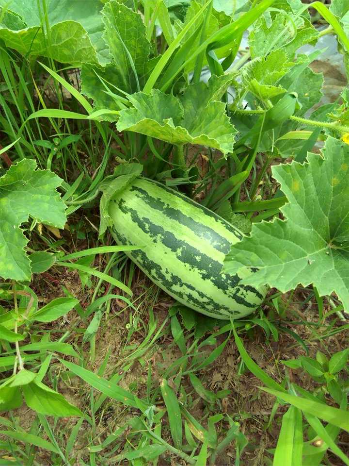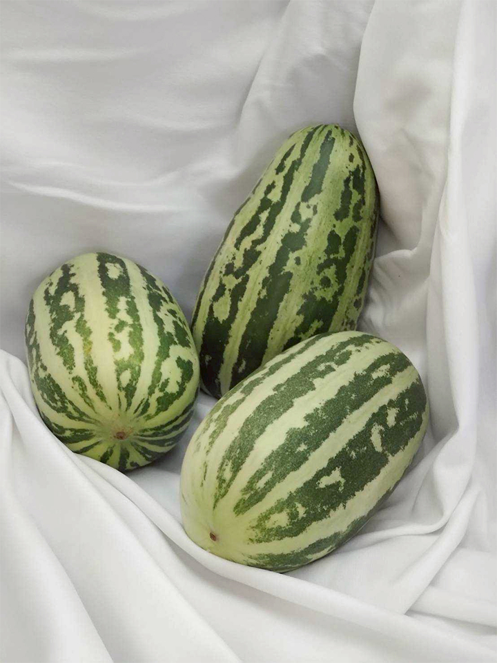 スイカを縦に引き延ばしたような色とかたちと説明すれば分かりやすいかもしれません。