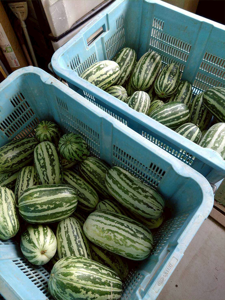 本カワズウリの方はカワズウリより表面に凹凸があるのですが、果肉は繊細できめが細かいと言われています。