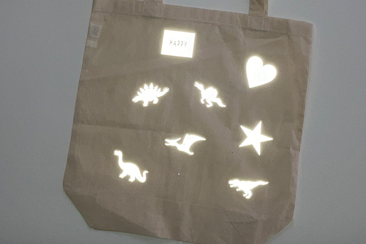 ワークショップの内容はトートバッグに自分でお絵描きをして、反射材を貼るという内容!