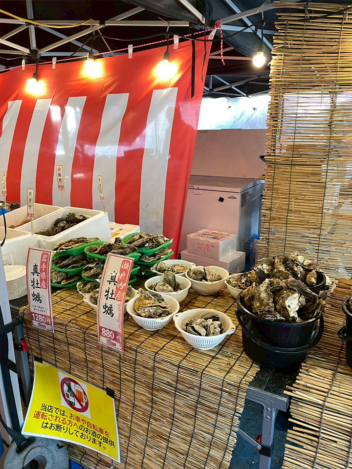 会場に入ると、炭火で焼かれる牡蠣の香ばしい香りが広がり、食欲がそそられます。
