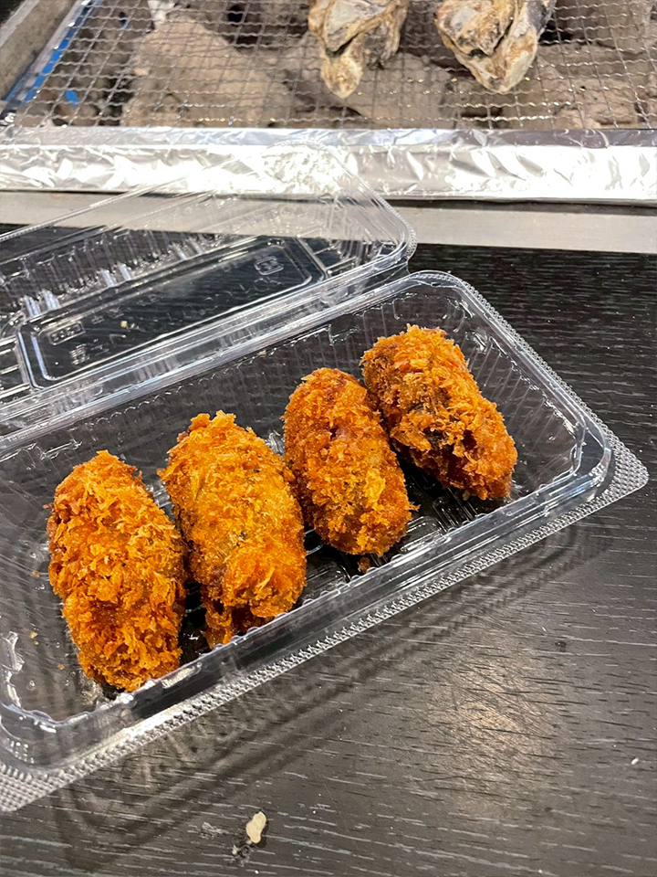 ほかにもホタテやサザエ、エビ、イカ串などの海鮮をはじめ、牡蠣フライや牡蠣ごはん、牡蠣汁などのメニューも用意されています。