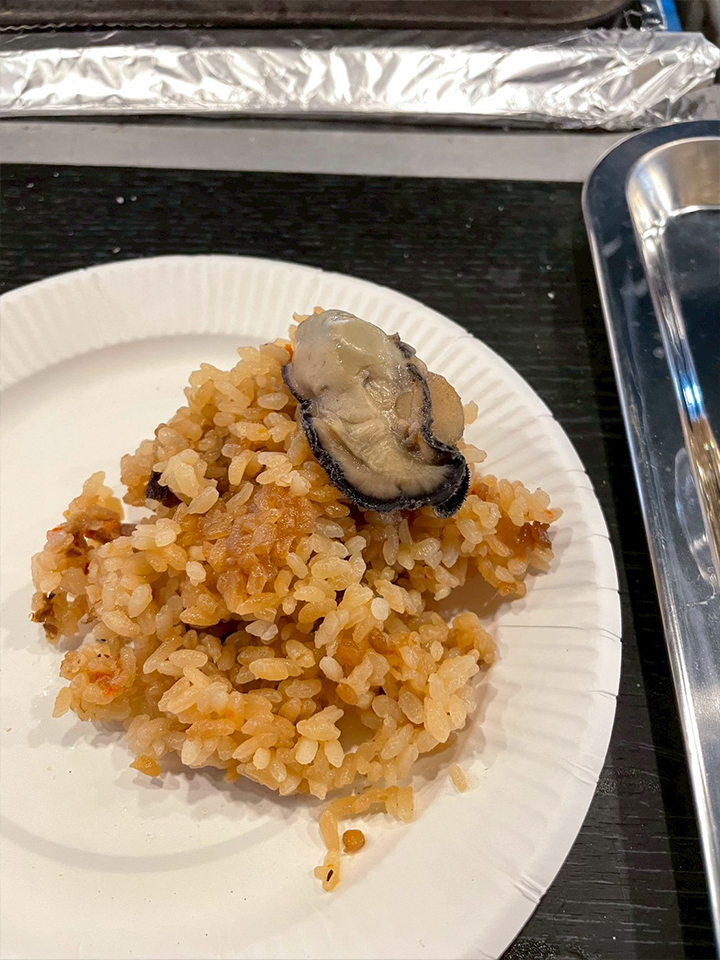 牡蠣の出汁で炊かれた牡蠣ご飯は旨みがたっぷり。カキフライもサクサクジューシーでぺろりと食べてしまいました!