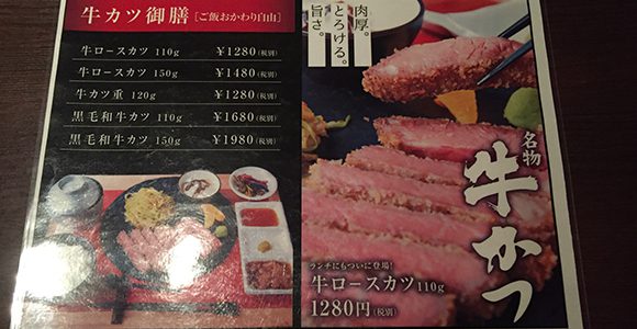 今回は名物の牛カツ御膳の110gを注文しました。
