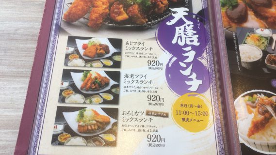 海老フライ、純けいかつ、ソースカツがメインメニュー。
