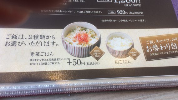 定食メニューのご飯は、白ご飯と青葉ごはんから選べます・