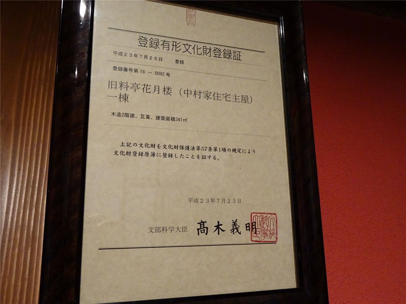 この花月楼さんの建物は登録有形文化財にも指定されております