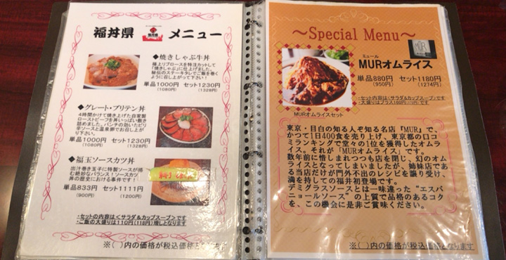 福丼県メニューとお店すすめのオムライスメニューやセットメニュー、丼ものメニューなどたくさんあって悩んじゃいますね(ー ー;)