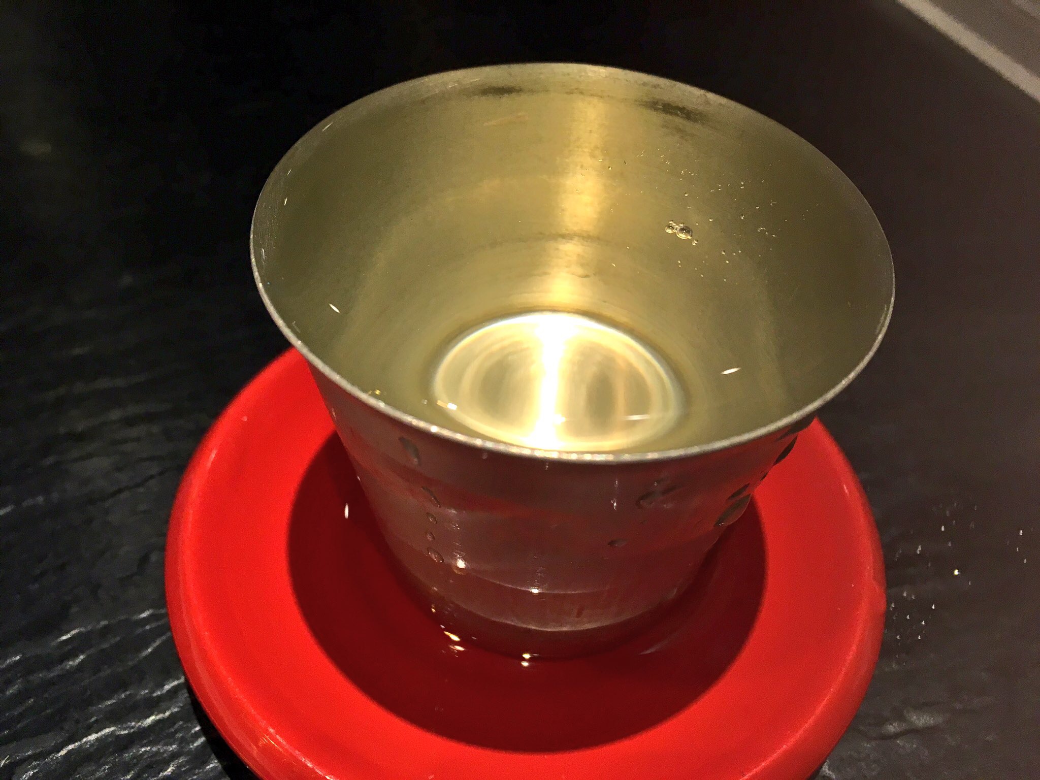 お通しには、日本酒がついてきました。日本酒がついてくるところ初めて見ました…。