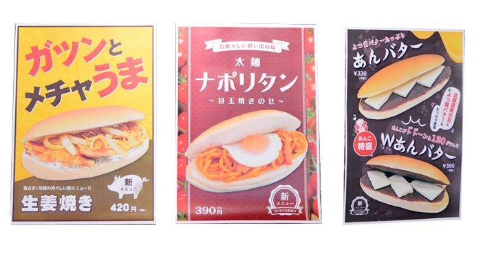 『生姜焼きコッペパン¥420』『太麺ナポリタン¥390』