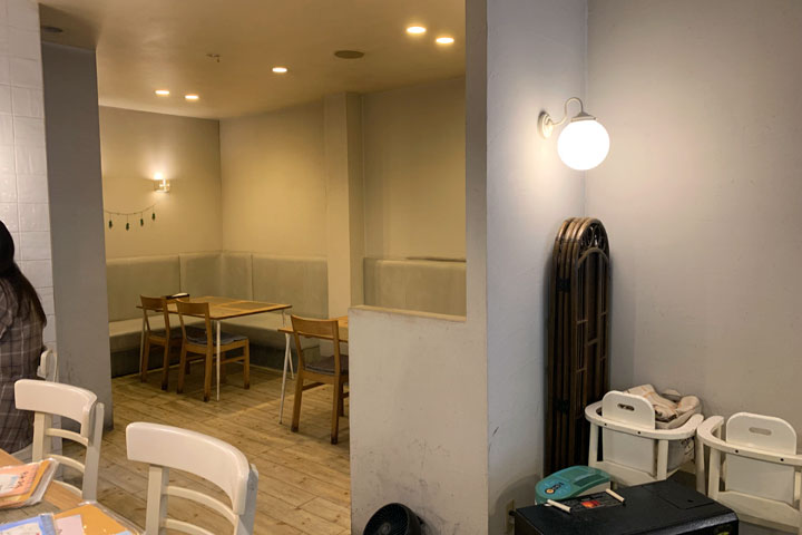 4人席とカウンター席があり、お子様用のイスも用意してあります。