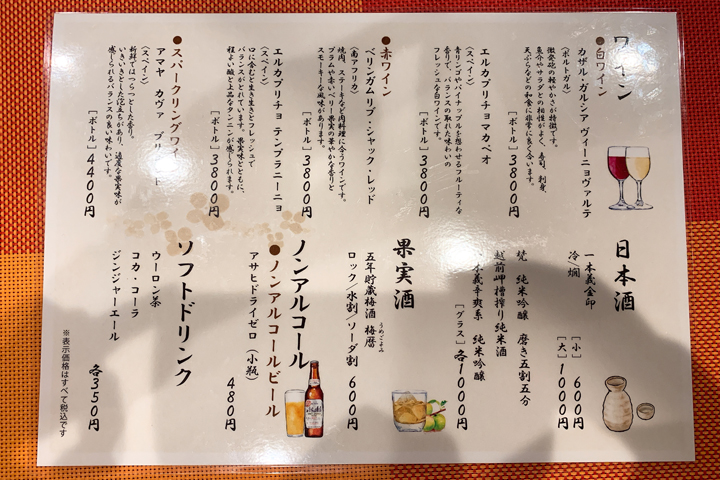 夜のドリンクメニュー
