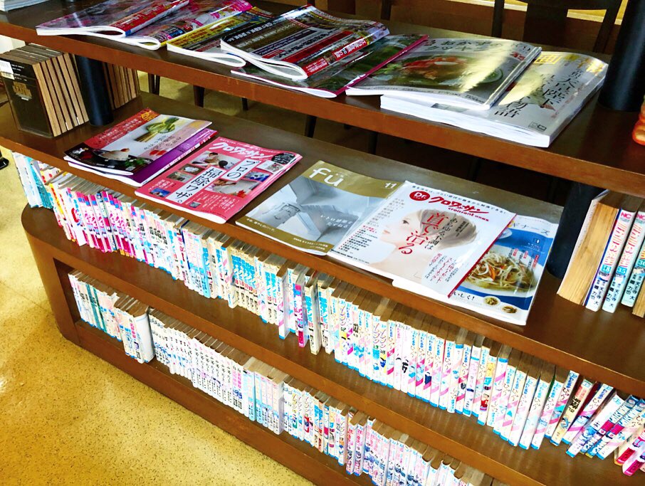 お店の中央には、雑誌や年季のはいった漫画がずらり。