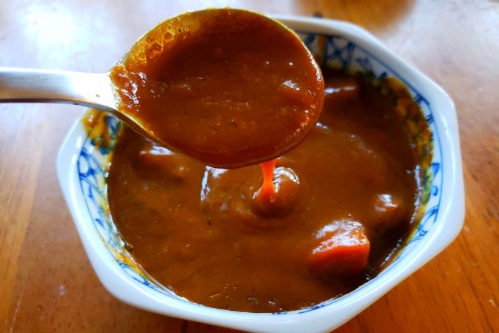 名前を見ただけでもう美味しい。器に入れると結構とろみの強いカレーが出てきました。