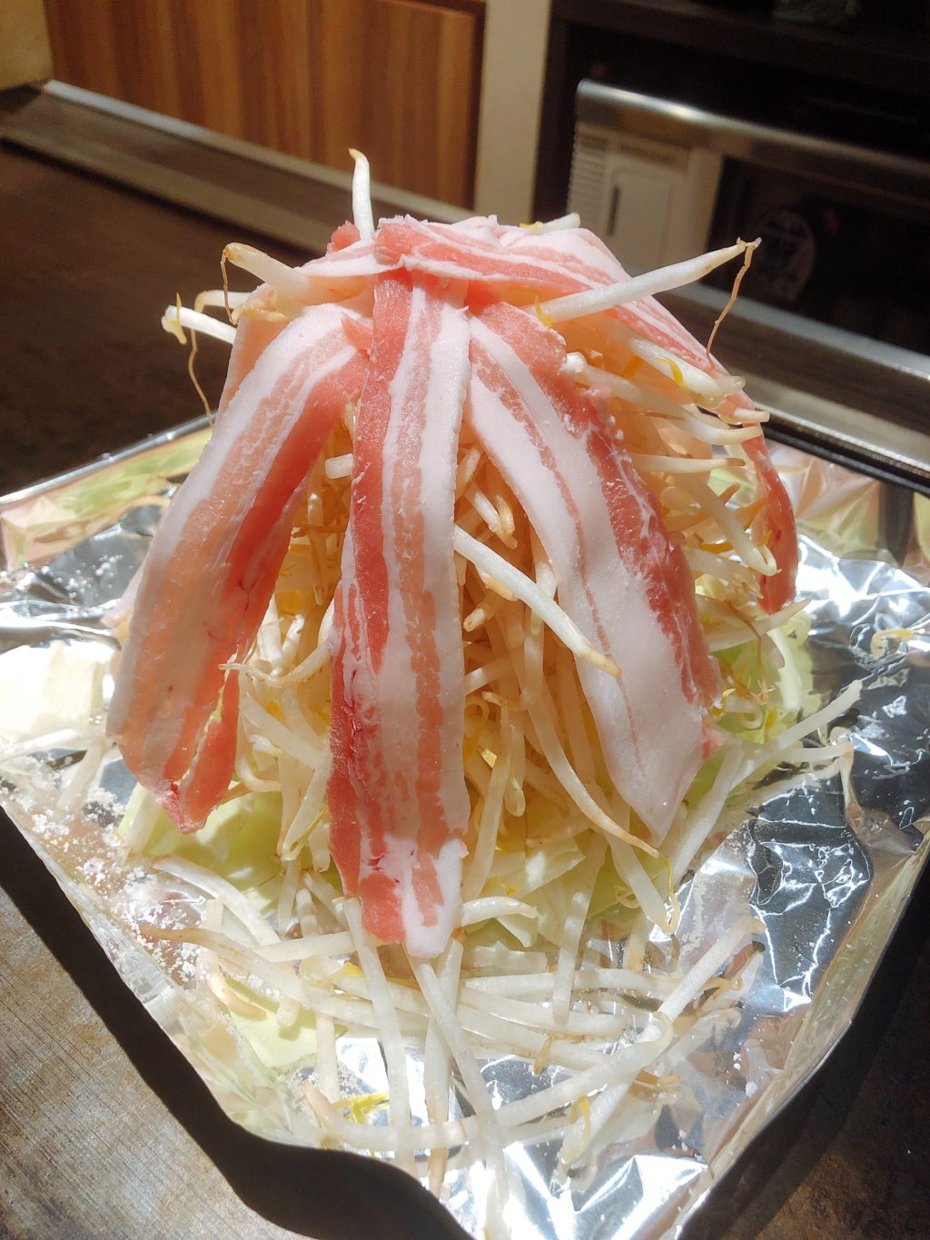 私のオススメもやしと豚バラの富士山焼き(850円)
