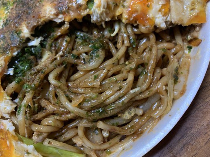 上にの乗っている卵もとろとろで中身の焼きそばもたっぷり入っています。