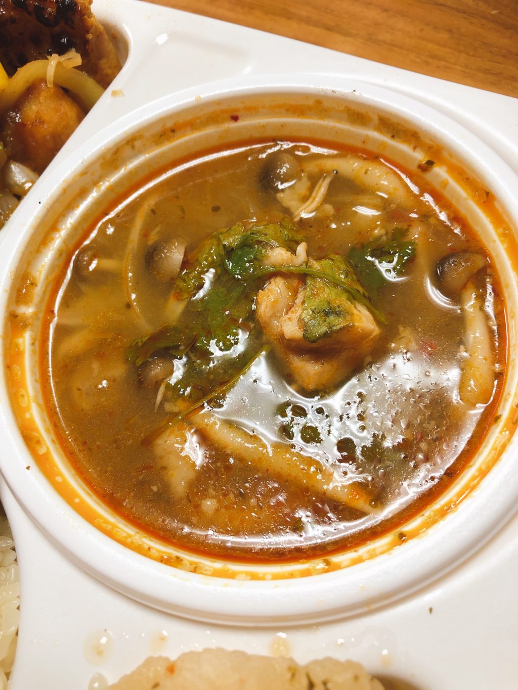 たこの輪切りが入っていて、トムヤムクン独特の酸っぱい辛さが