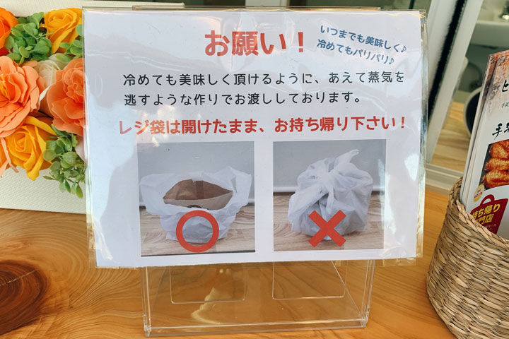 冷めても美味しく食べられるようにレジ袋は開けたまま持ち帰るので、車の中がめちゃくちゃいい匂いに…!何度つまみ食いしようと思った事か。
