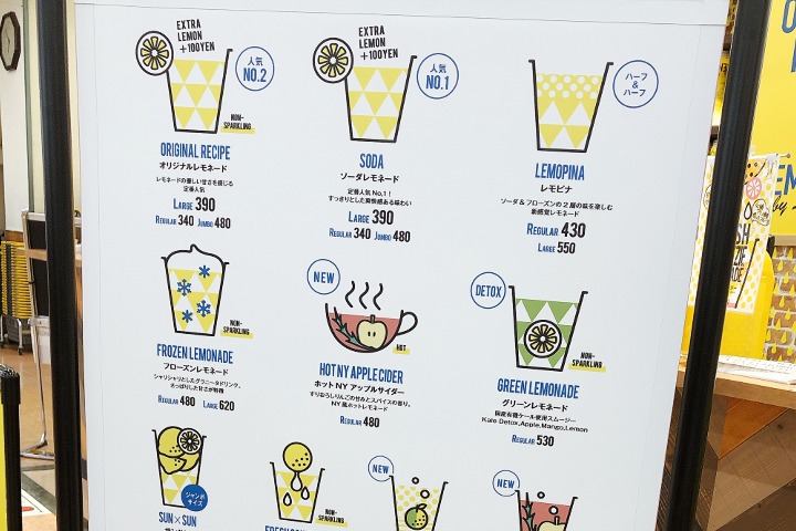 今回は、オリジナルレモネードとホットレモネードのスタンダードな2つを選んでみました。