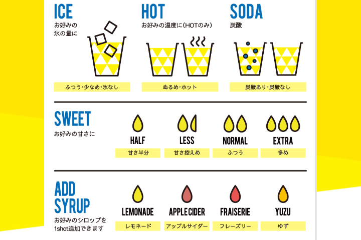 自分の好みに合わせたレモネードもカスタムもすることができます。