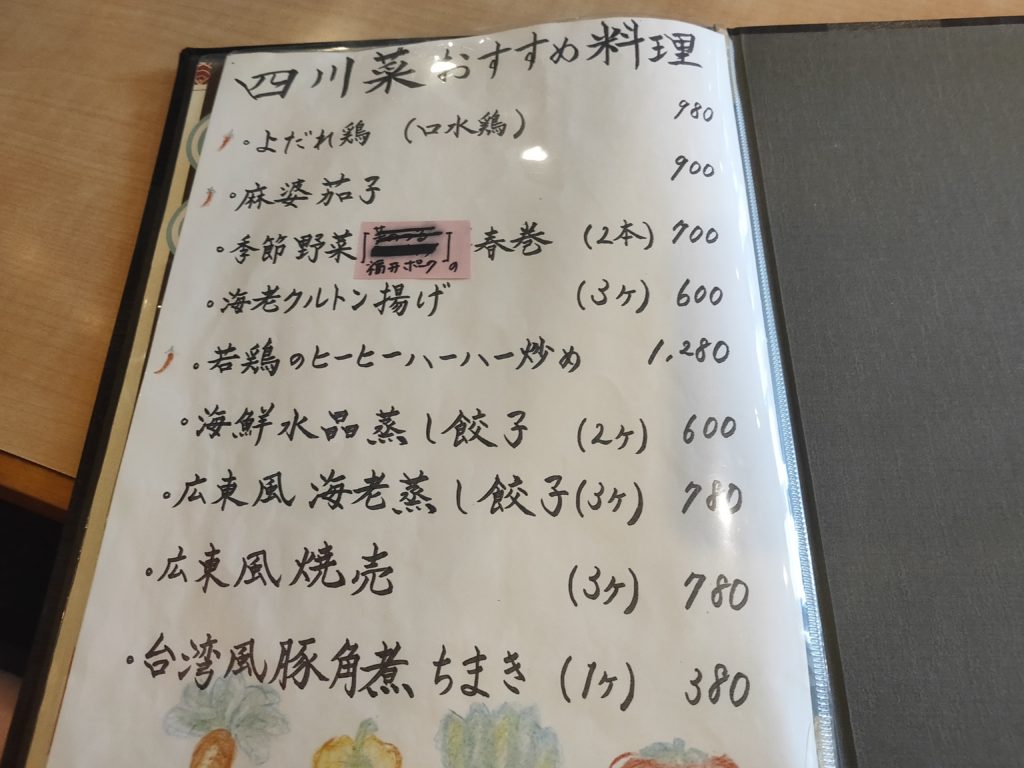 越前市にある中華屋。麻婆豆腐は辛さ調整ができるので、お好みにあわせて変更できます。