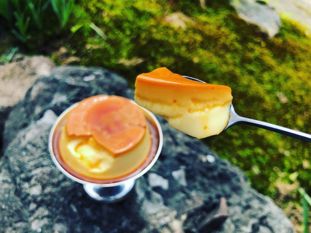 撮影のためと思ったのですが、外で食べるプリンもまた良きだなぁと思いました。
