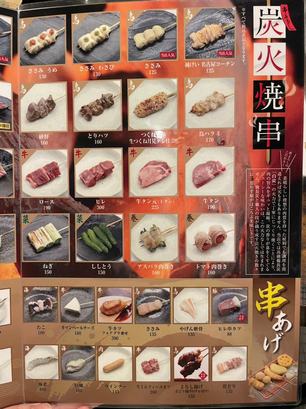 その他にも牛タン、名古屋コーチンの純けい、トリハツなどどれを選んでもハズレなし。
