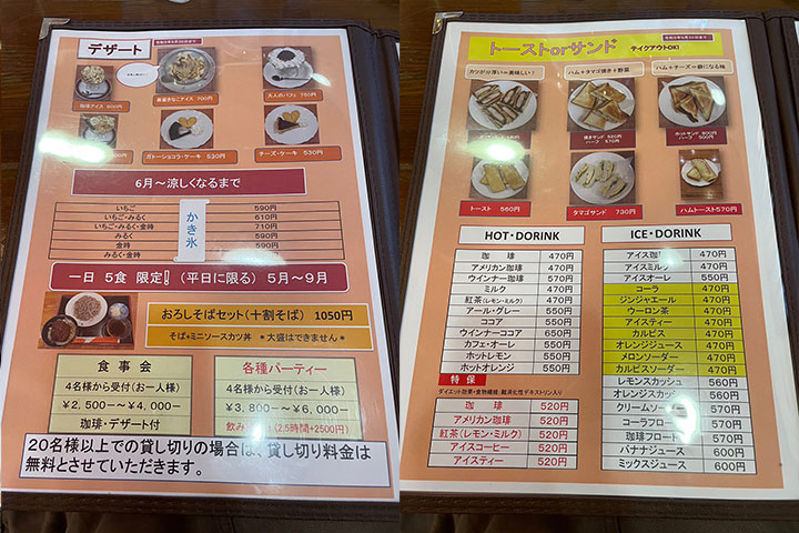 【カフェ・レストラン オレンジ】のメニューを紹介