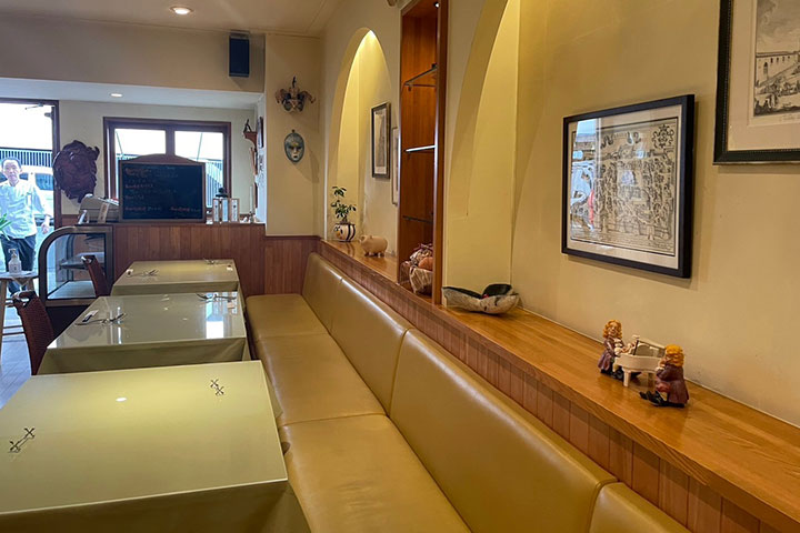 席数は7テーブルほど。4人で座ると少し窮屈くらいのテーブルのサイズです。