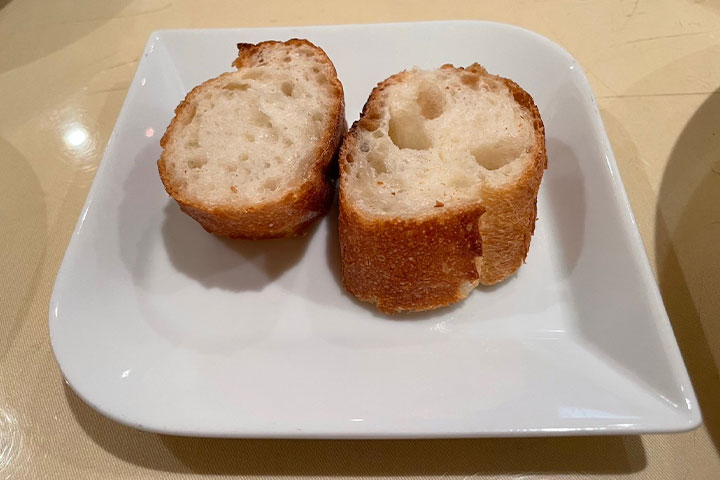 パンにはオリーブオイルやバターがついていないので、パスタソースをつけていただきました!