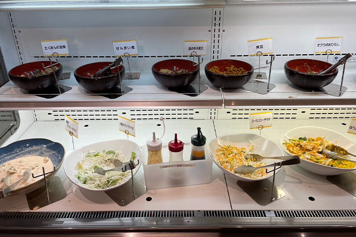 お昼限定の『お幸ざいバイキング』では福井の郷土料理など、毎日約20種類のお惣菜がずらりと並びます⭐