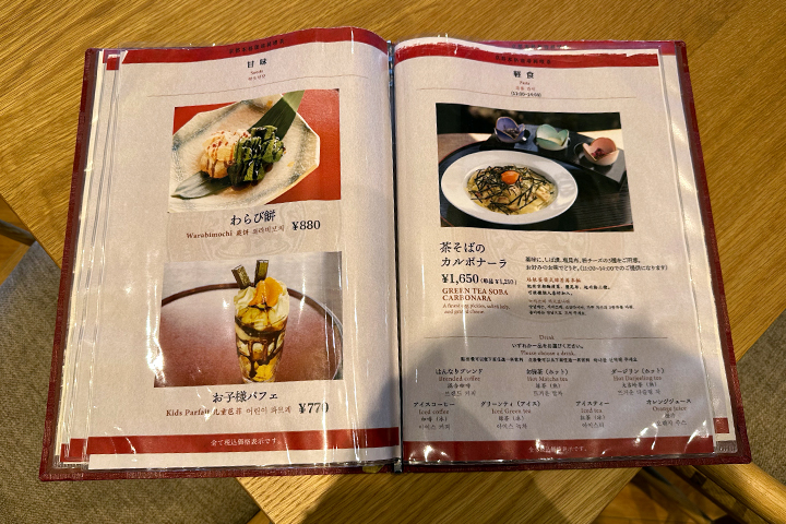 デザートだけじゃなく茶そばのカルボナーラなど軽食メニューもありますよ。