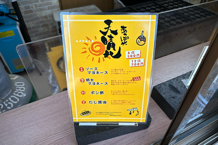 メニューはこんな感じ。8個入りが500円とリーズナブルなお値段!
