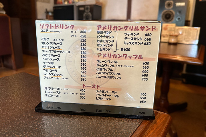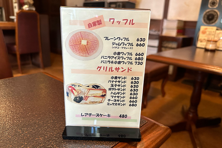 今回は純喫茶メニューを堪能したいと思ったので、バニラ&アイスワッフル(680円)とクリームソーダ(630円)を注文。