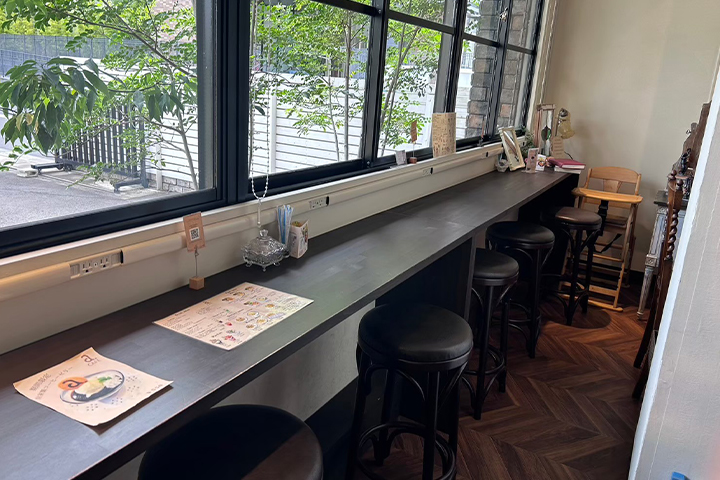 カフェの入口から入るとテーブル席がいくつかと、テラス席があり全部で20席ほど。