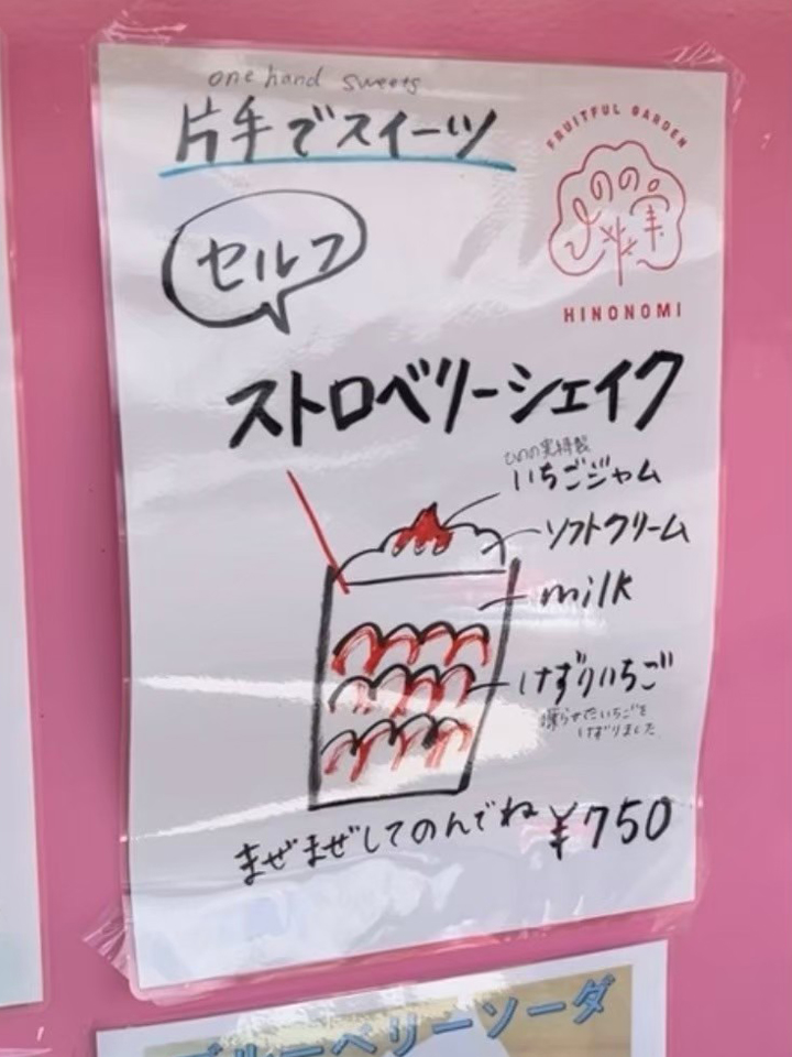 余談ですが、別の日にまたシェイクが飲みたくなって訪れたら、【ひののみパフェ】が新メニューで登場していたので注文!