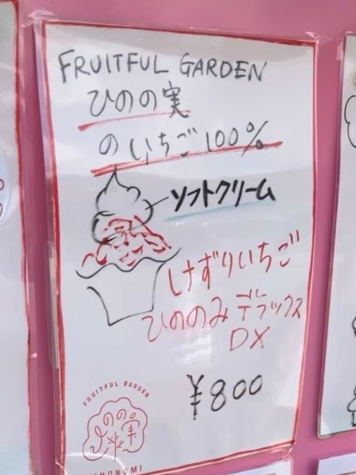 このソフトクリームは、オーナーさんがいちごに合うようにと独自の配合で開発されたソフトクリームだそうで、めちゃくちゃ濃厚でおいしくてびっくり!