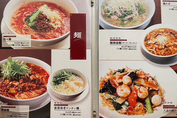 ディナーセットには本日の一品、選べる小籠包、お好きな麺またはご飯がついています。