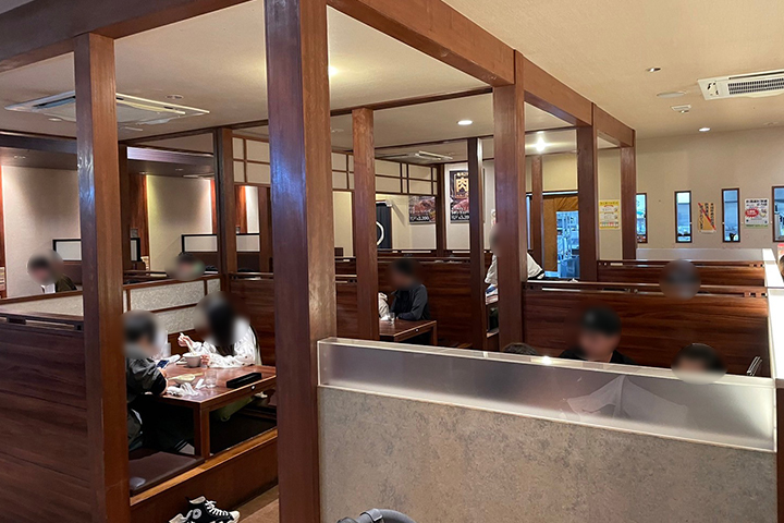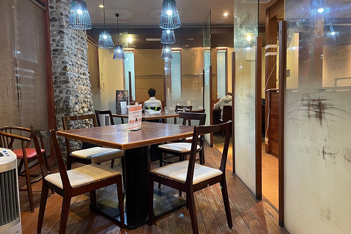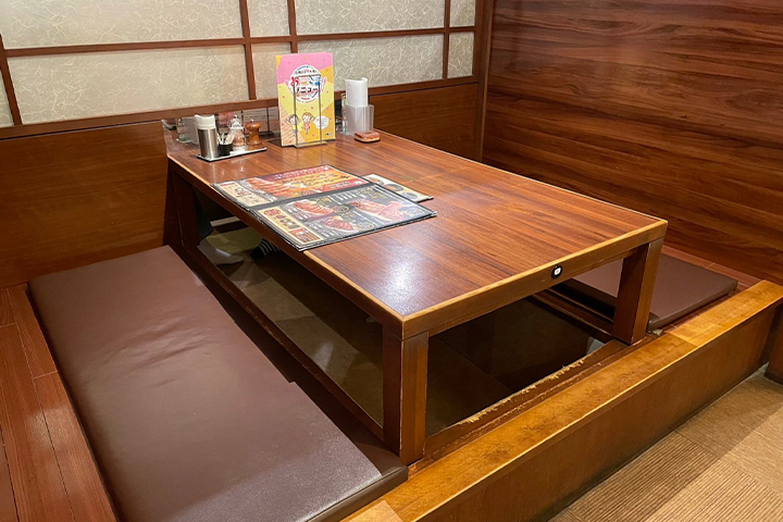 店内はテーブル席と掘りごたつの座敷席、お一人様向けのカウンター席があります。